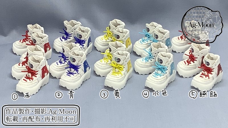 本体・ふち・靴底白、・靴紐・Aラインが別カラー構成です。